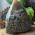 Teilweise geschliffener Achat. Standfläche, unterer Teil naturbelassen, oben Spitzenschliff. Ca. 9,9cm hoch.